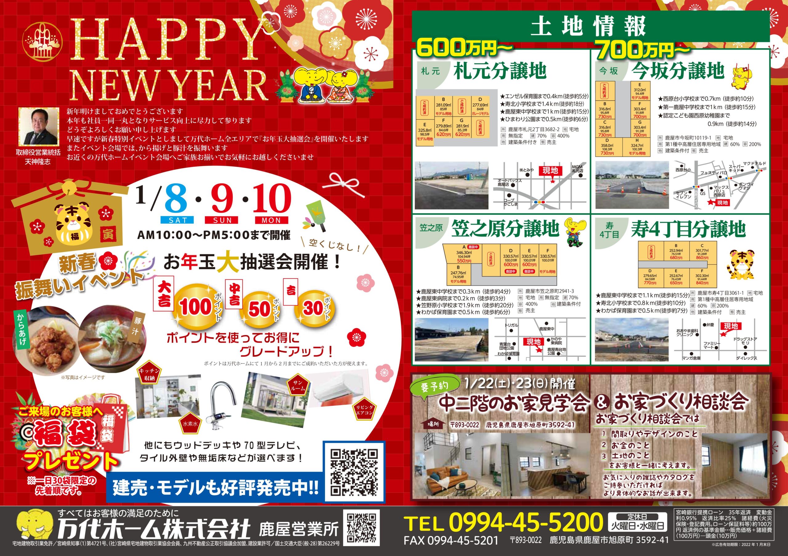 鹿屋市の情報誌『ビッグウェーブ』1月号に 万代ホームの最新情報が掲載されています! 新春フェアや最新分譲地情報など、 見どころいっぱい! ぜひ一度手に取ってご覧になってみて下さい! tel:0994-45-5200 各エリアで開催中の見学会・相談会の ご予約はイベントページから、 ご来場の予約は各展示場のページから お気軽にどうぞ!