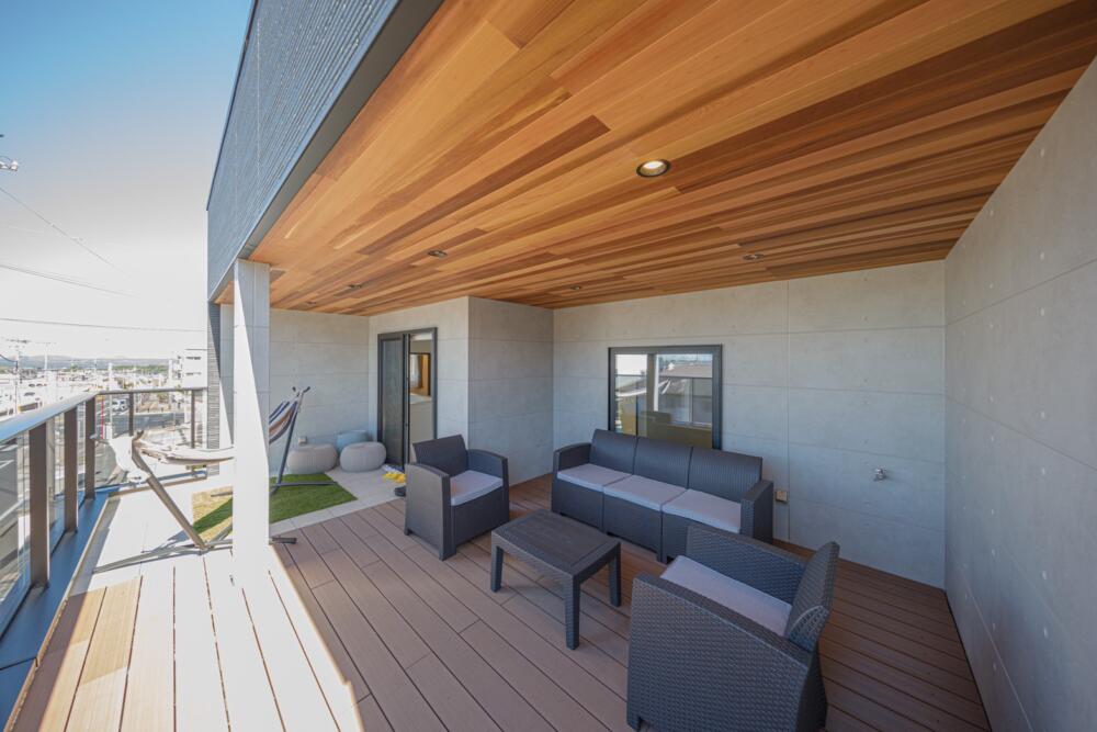 そらにわMODELの特徴は広々バルコニー、インナーガレージ、タカラスタンダード様の上品なオフェリアのシステムキッチンなど