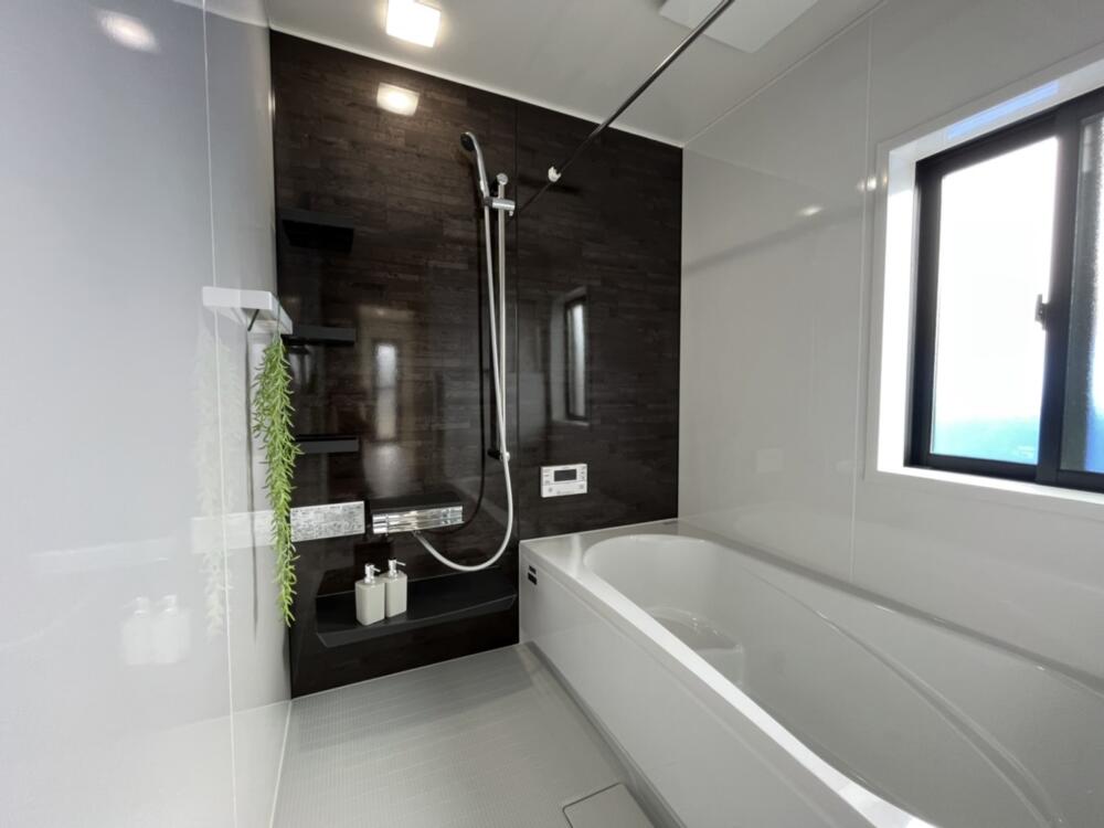 24帖の広々リビングです。正面のエコカラットがとてもおしゃれです。