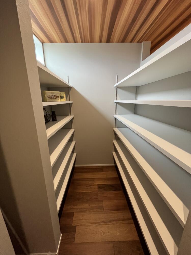 キッチン裏の大容量のパントリー。