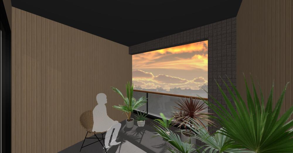 外壁は黒を基調とし、バルコニー部分には木目調をアクセントでくわえることで存在感のあるデザインになりました。