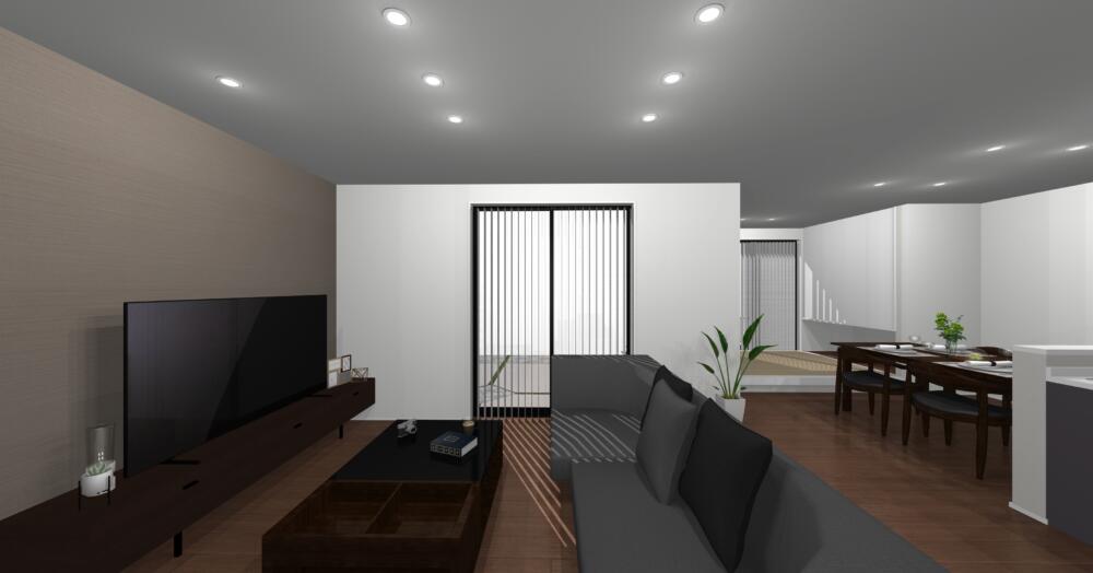 南向きに面したリビングと和室は、キッチンから家族の様子を見渡せるプランニングです。