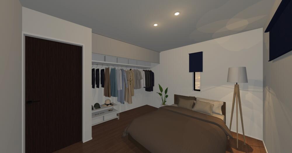 寝室にはいつでも使えるようオープンタイプのクローゼットがあります。