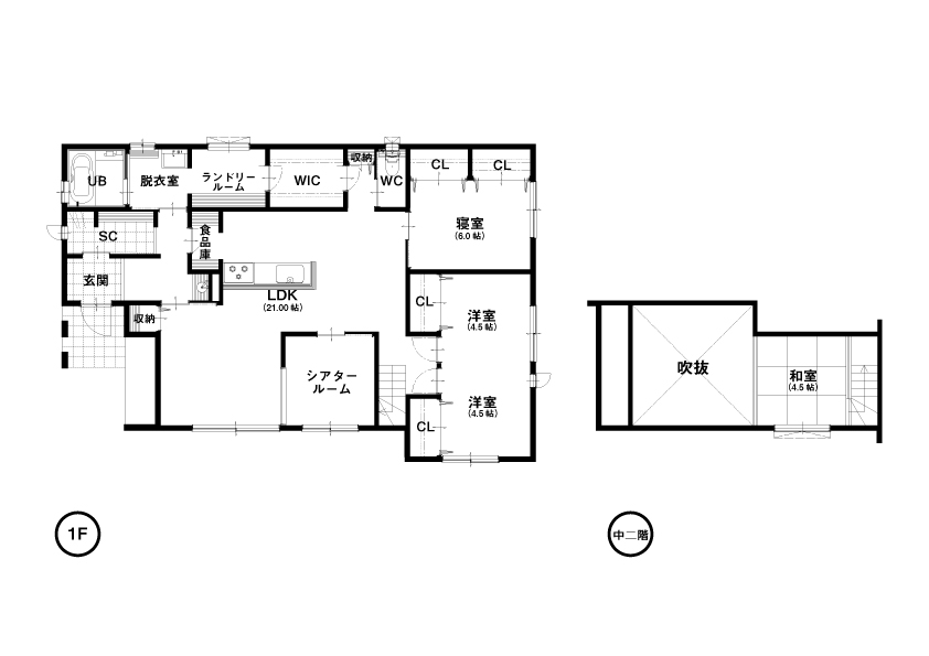 中2階下の秘密基地のようなシアタールームで