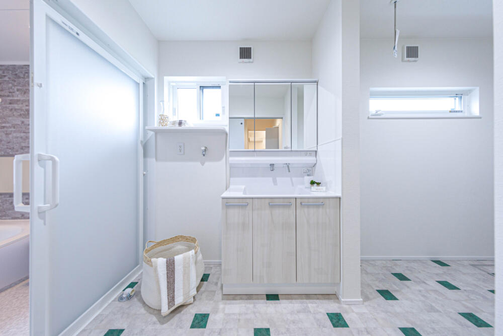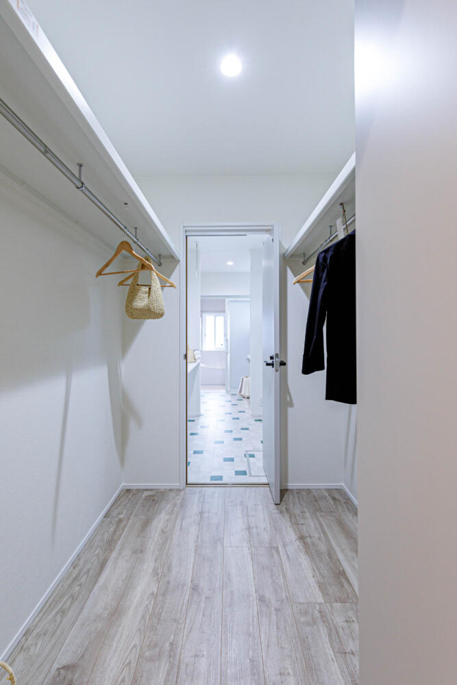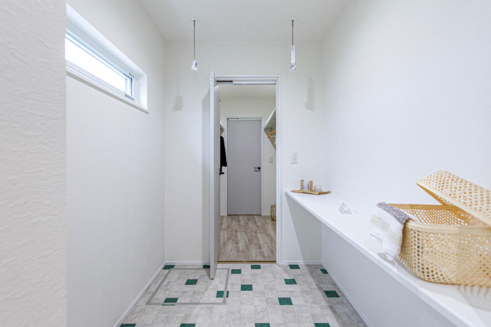 家事ラク動線で繋がった脱衣室→ランドリールーム→ウォークインクローゼット。ランドリールームにはカウンターがあり家事室としても活用できます。ウォークインクローゼットを抜けるとLDKに繋がっていて家族みんなで使いやすいようプランニングしました。