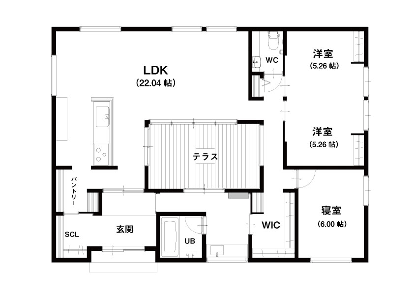 家の中心にテラスを設けたので