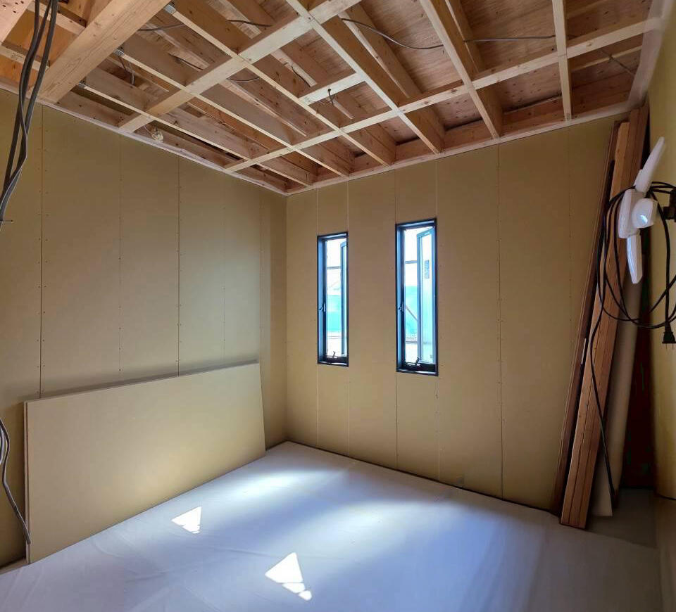 壁に石膏ボードが貼られています!👀