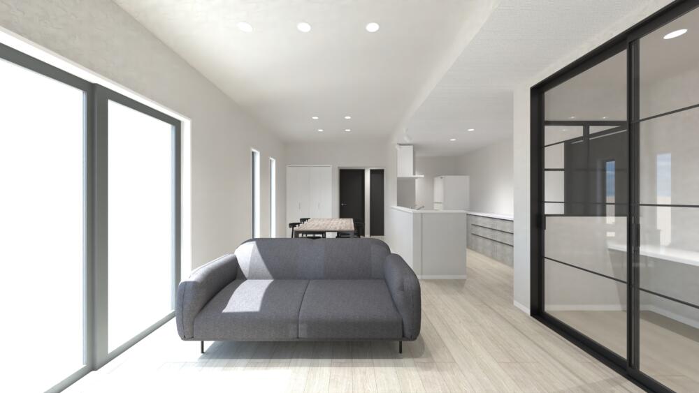 | 仲介手数料 | なし | 設備 | 省令準耐火仕様・AIリキッド工法・高性能グラスウール断熱材・エアコン2台・エコキュート・高気密施工・制震Kダンパー・駐車2台可 |