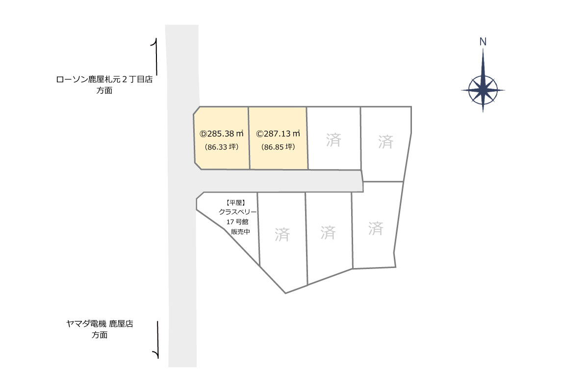 | 販売価格 | 《A号地》ご成約済み 《B号地》ご成約済み 《C号地》530万円(287.13㎡/86.85坪) 《D号地》530万円(285.39㎡/86.33坪) 《E号地》クラスベリー17号館【平屋】販売中 |