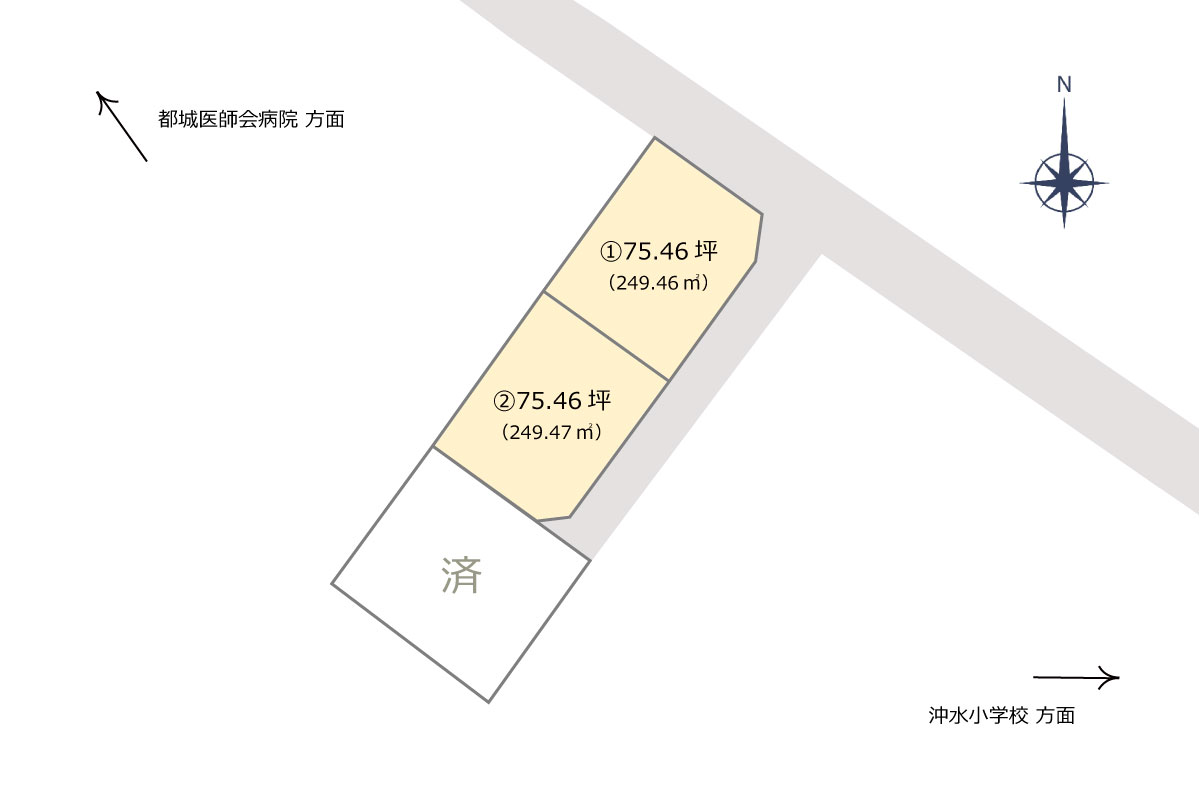 | 販売価格 | 《1号地》747万円(249.46㎡/75.46坪) 《2号地》732万円(249.47㎡/75.46坪) 《3号地》ご成約済み |