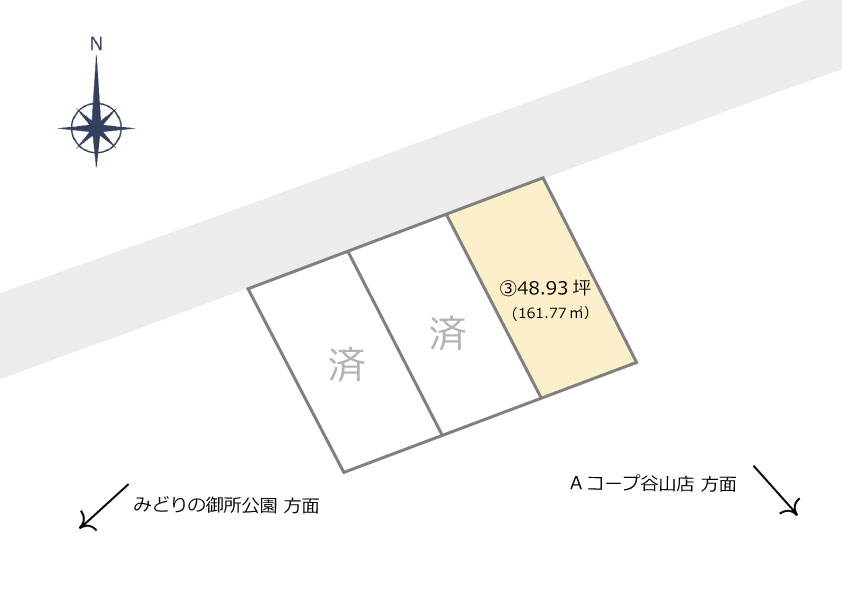 | 販売価格 | 《1号地》ご成約済み 《2号地》ご成約済み 《3号地》1300万円 (161.77㎡/48.93坪) |