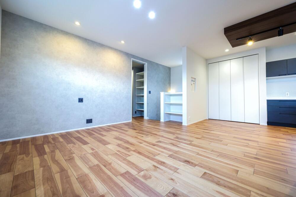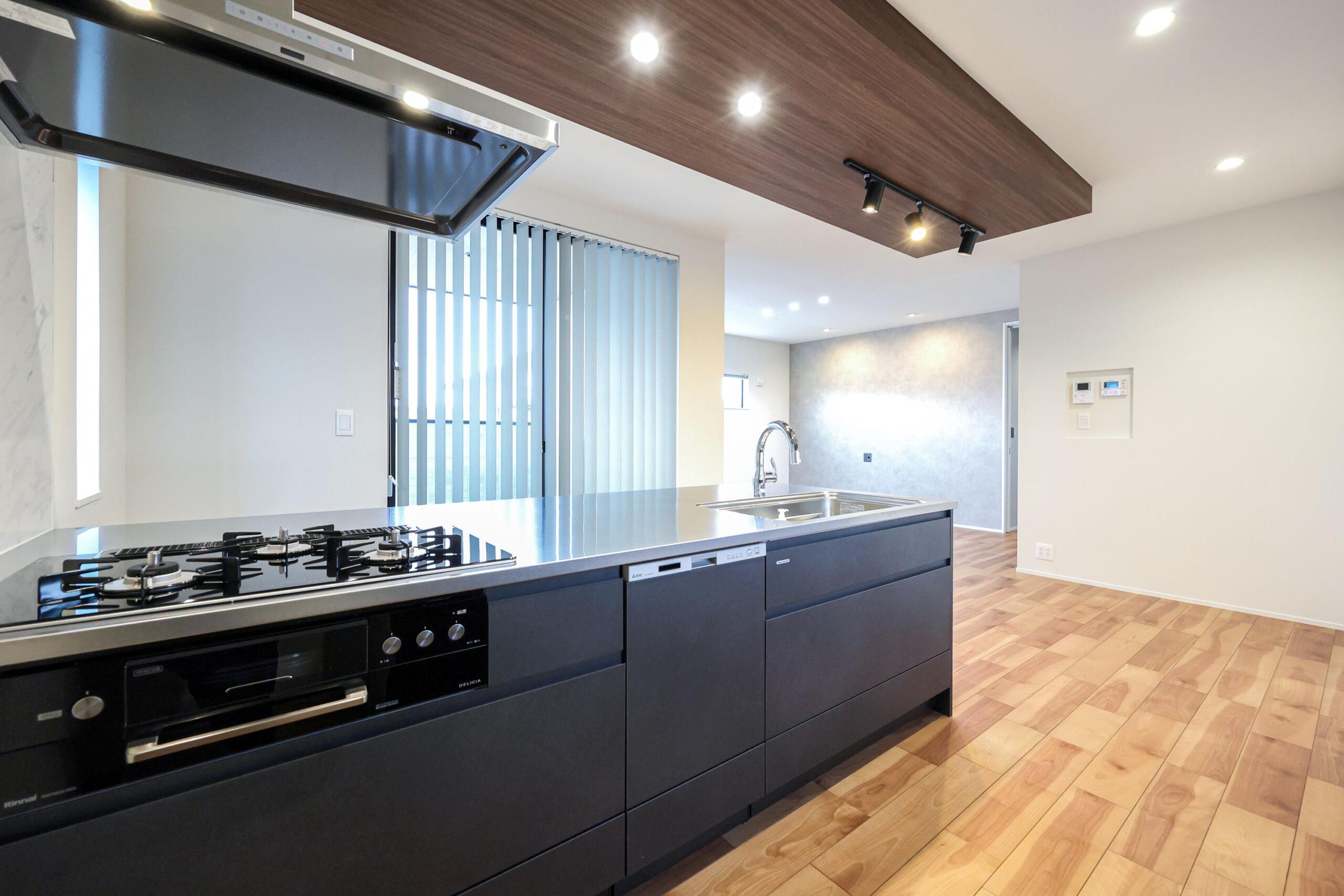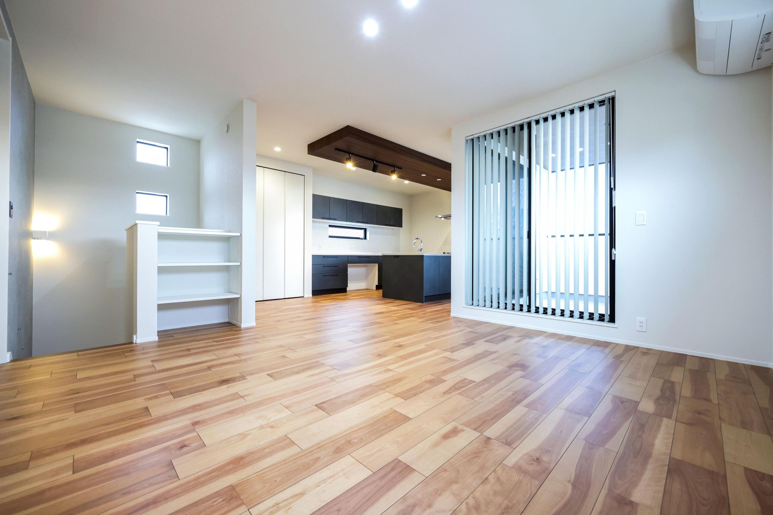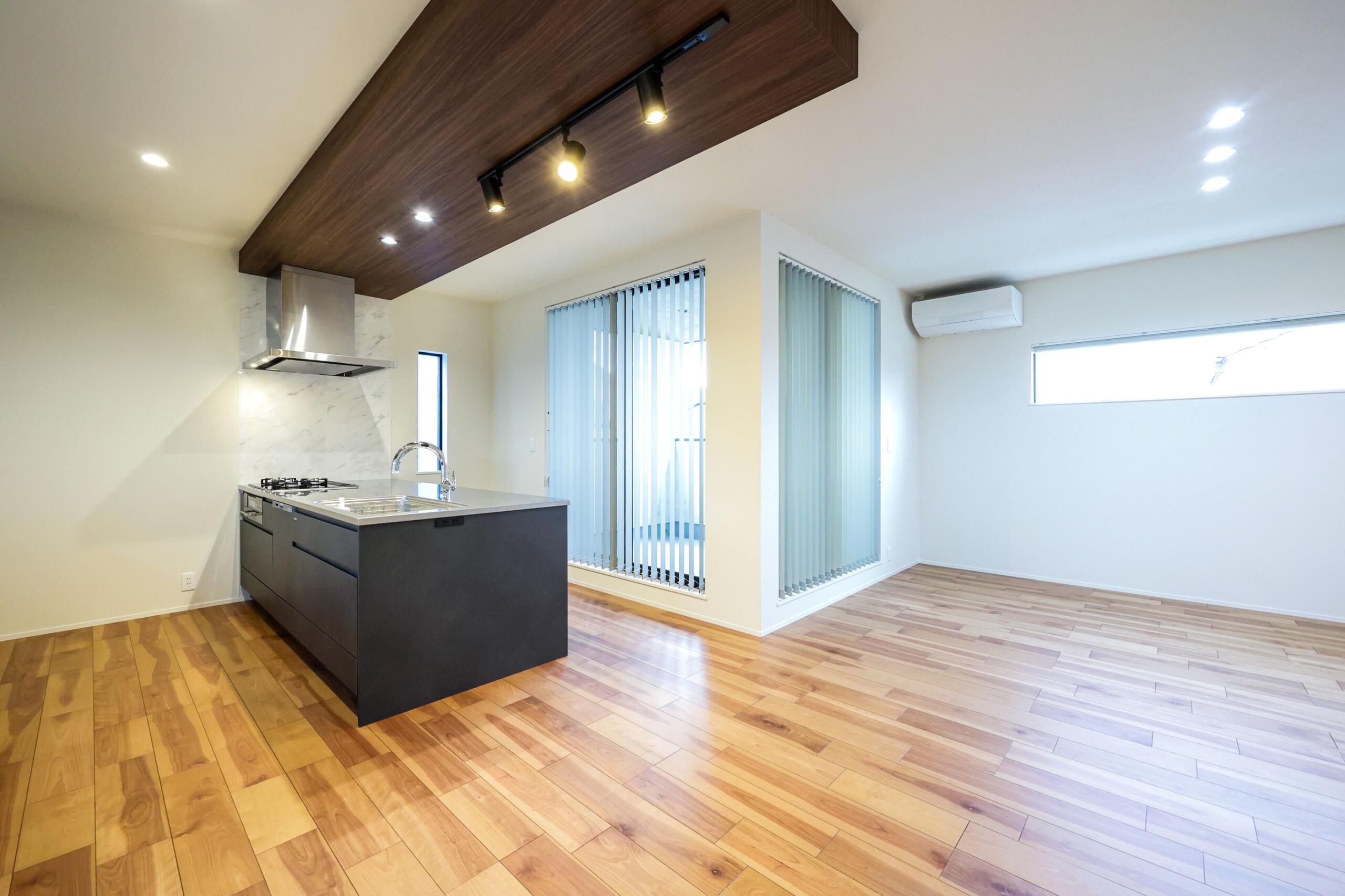 家族の様子が見えるL字型LDK。