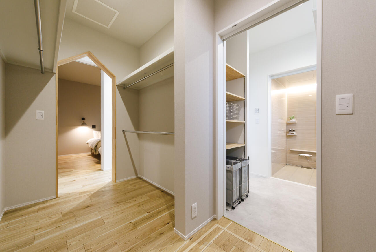 ドライルームとファミリークロークをつなげ、