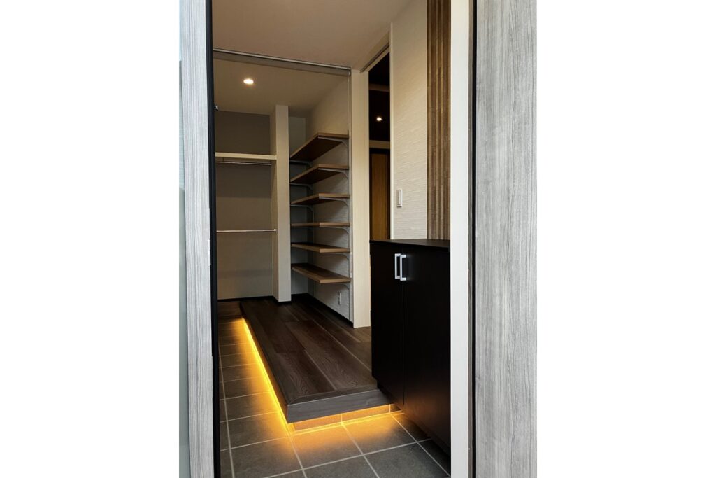 玄関も下に間接照明を入れることで素敵な空間となっています。
