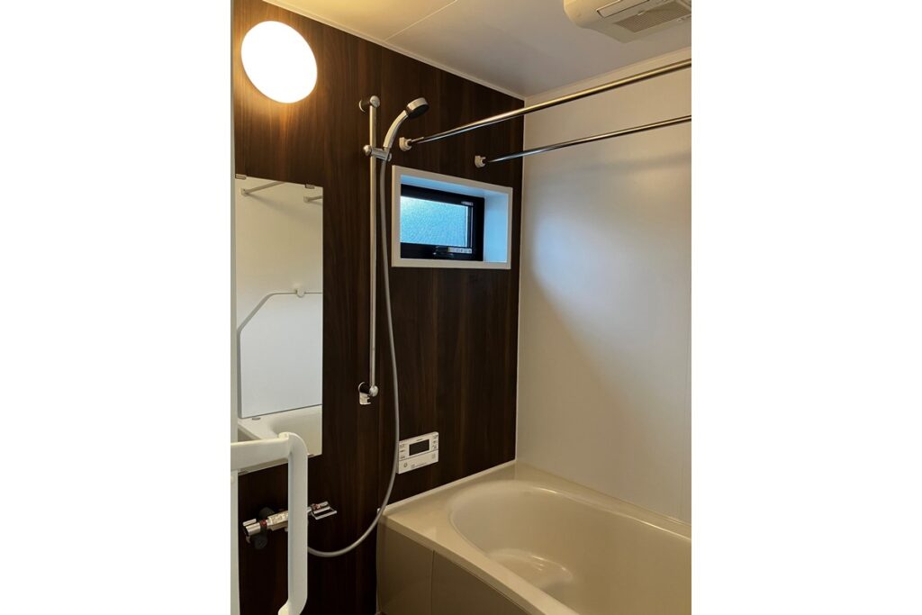 ユニットバスは、パナソニック オフローラ1616BL(壁柄:ACウォールナット+グレイスホワイト)