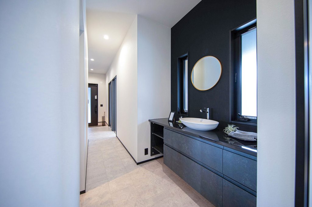 玄関とすべての居室の中心にある化粧台スペース。