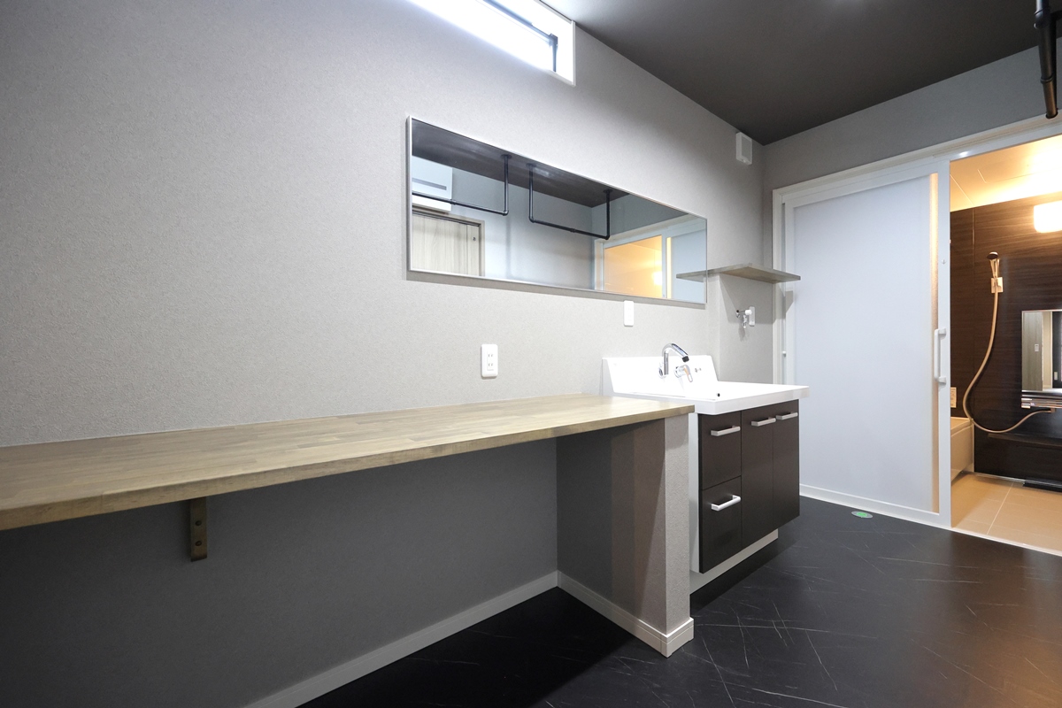 水周りが一直線の動線。広さもあって使い勝手も抜群。