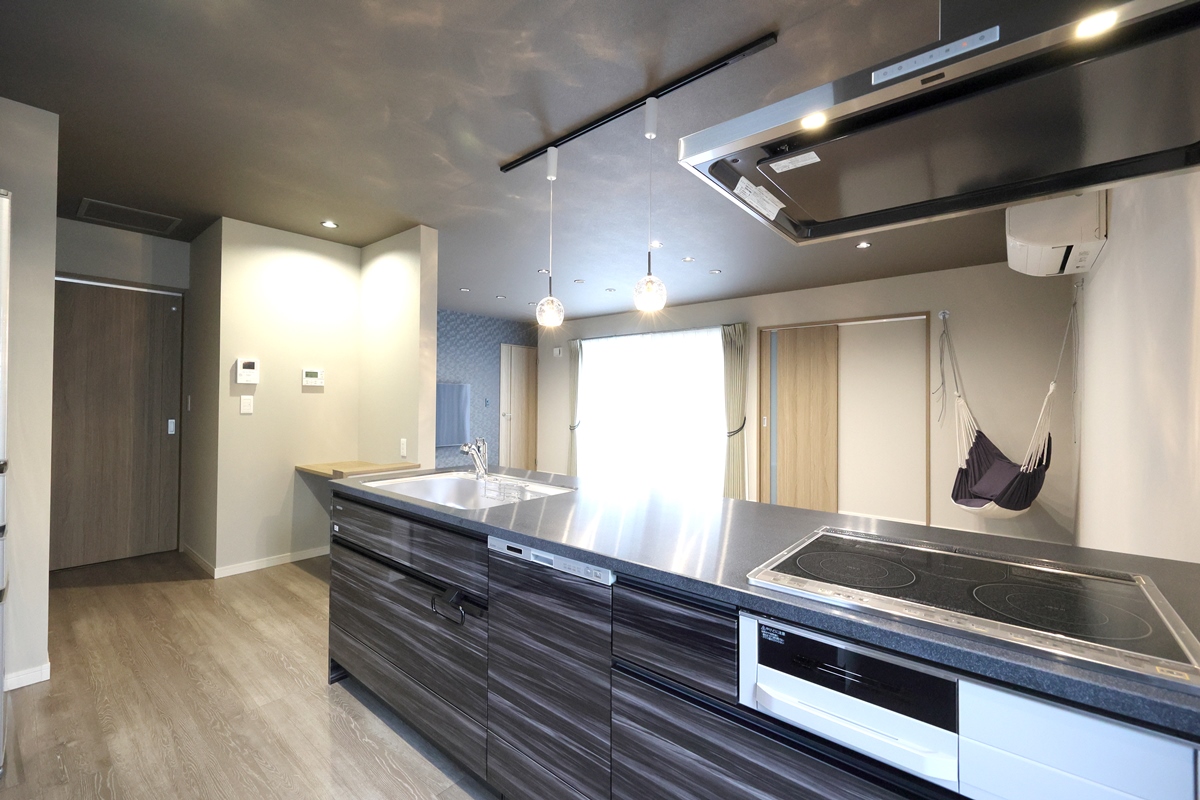 お施主様支給のペンダントライトが素敵な色合いを演出しています。