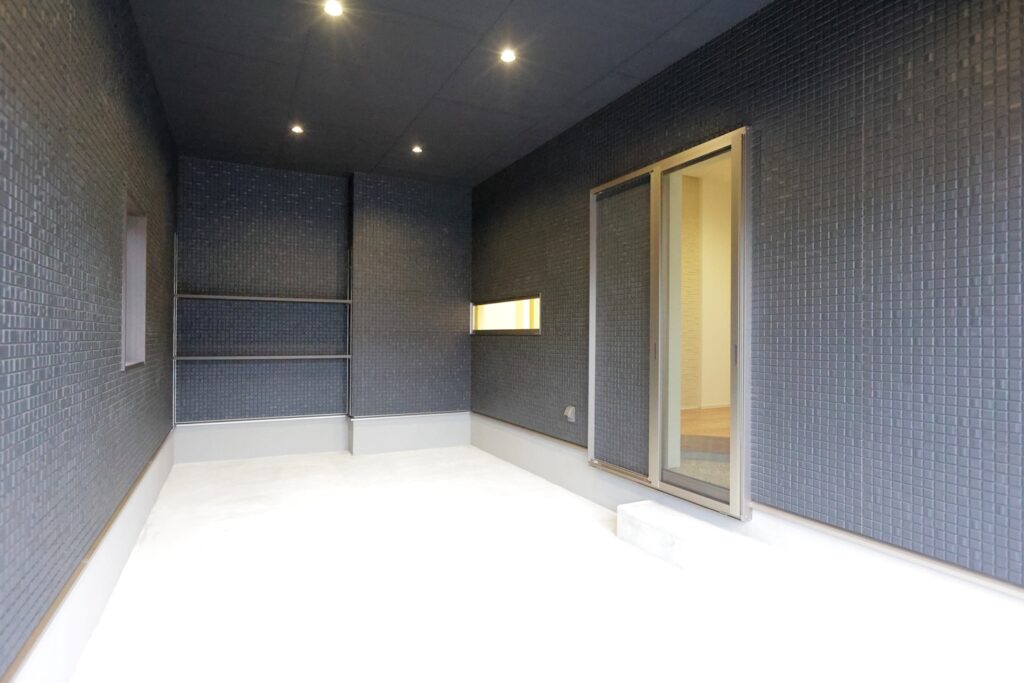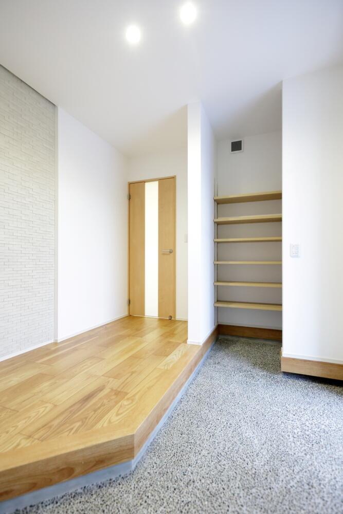 玄関は一般的なタイル張りではなく、洗い出しを採用。