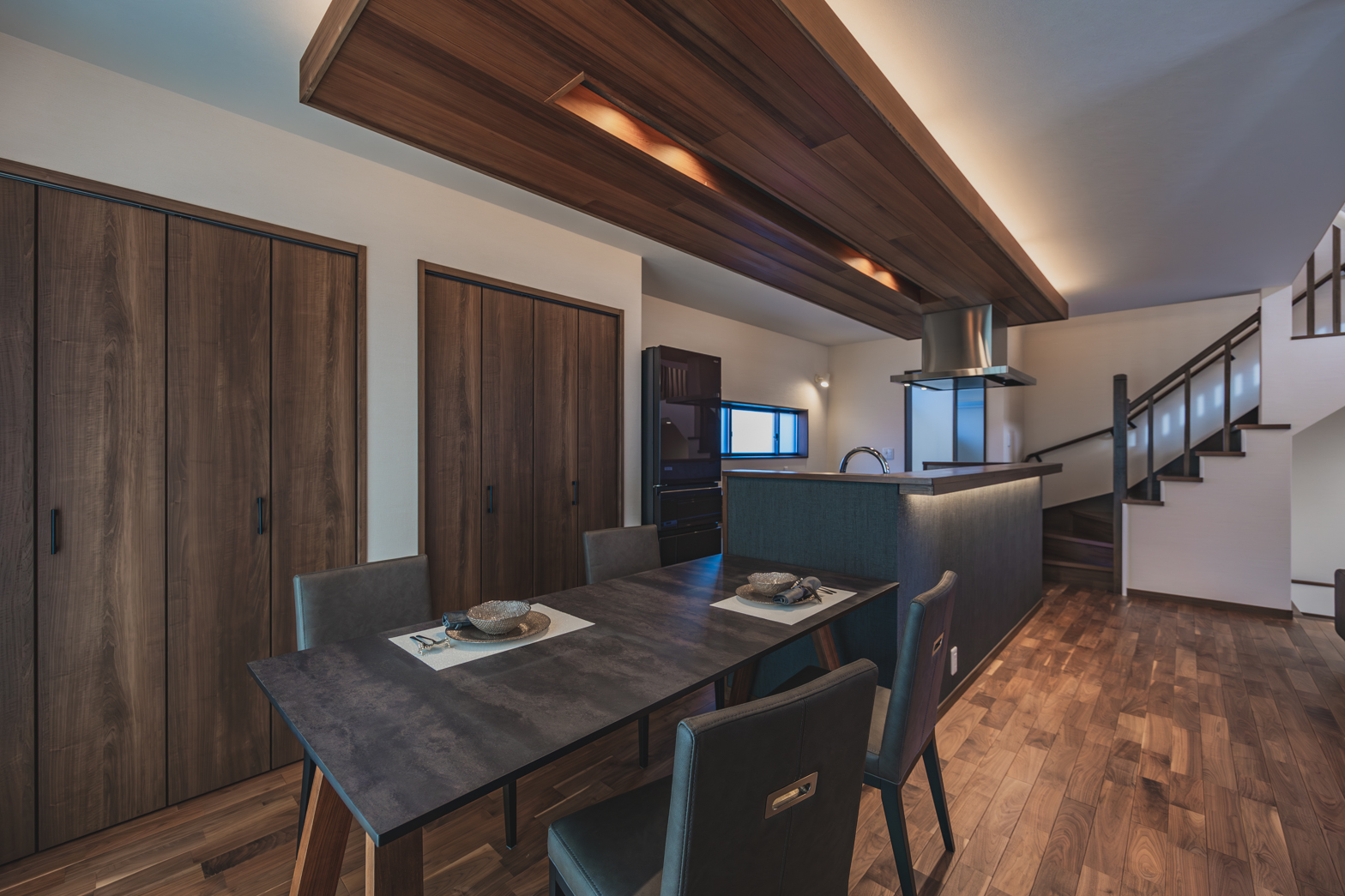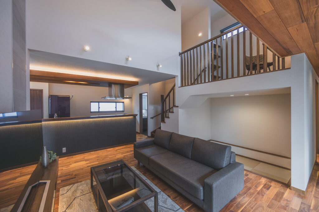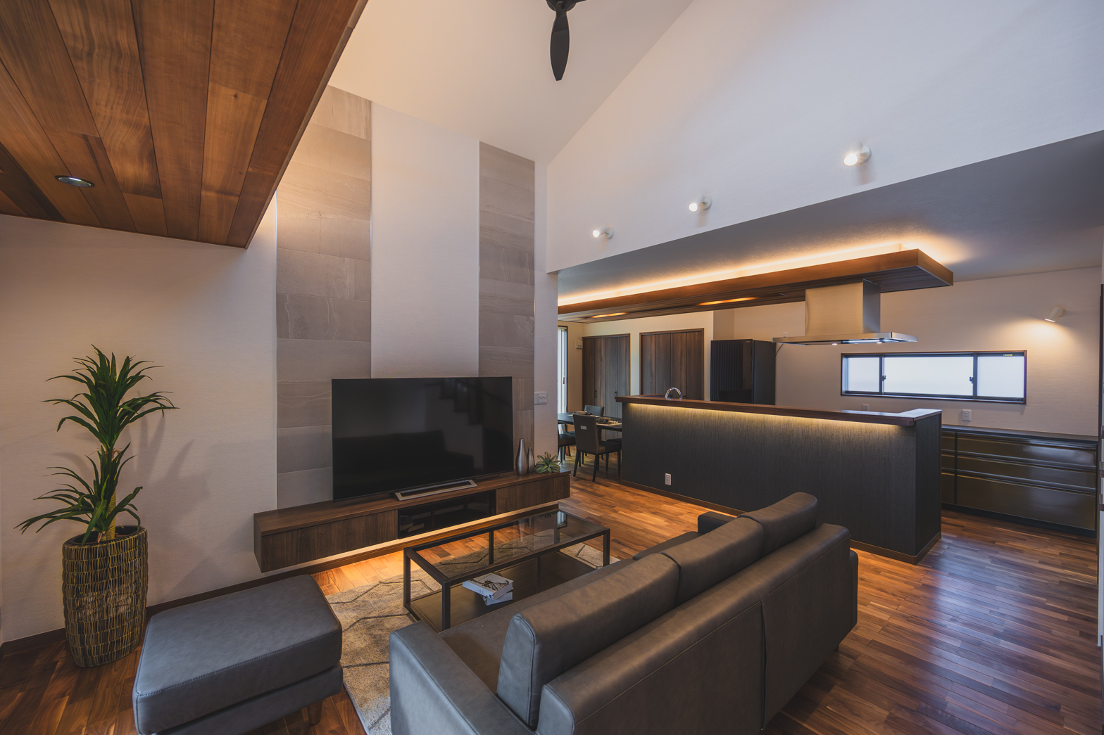間接照明を散りばめたLDK。ゆったり過ごせる設計です。