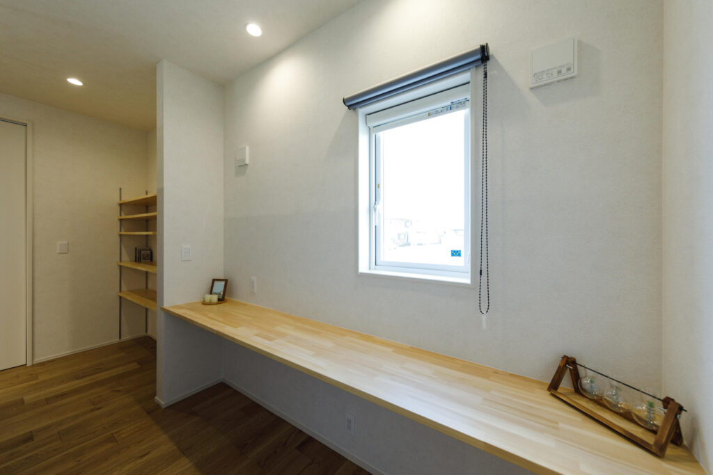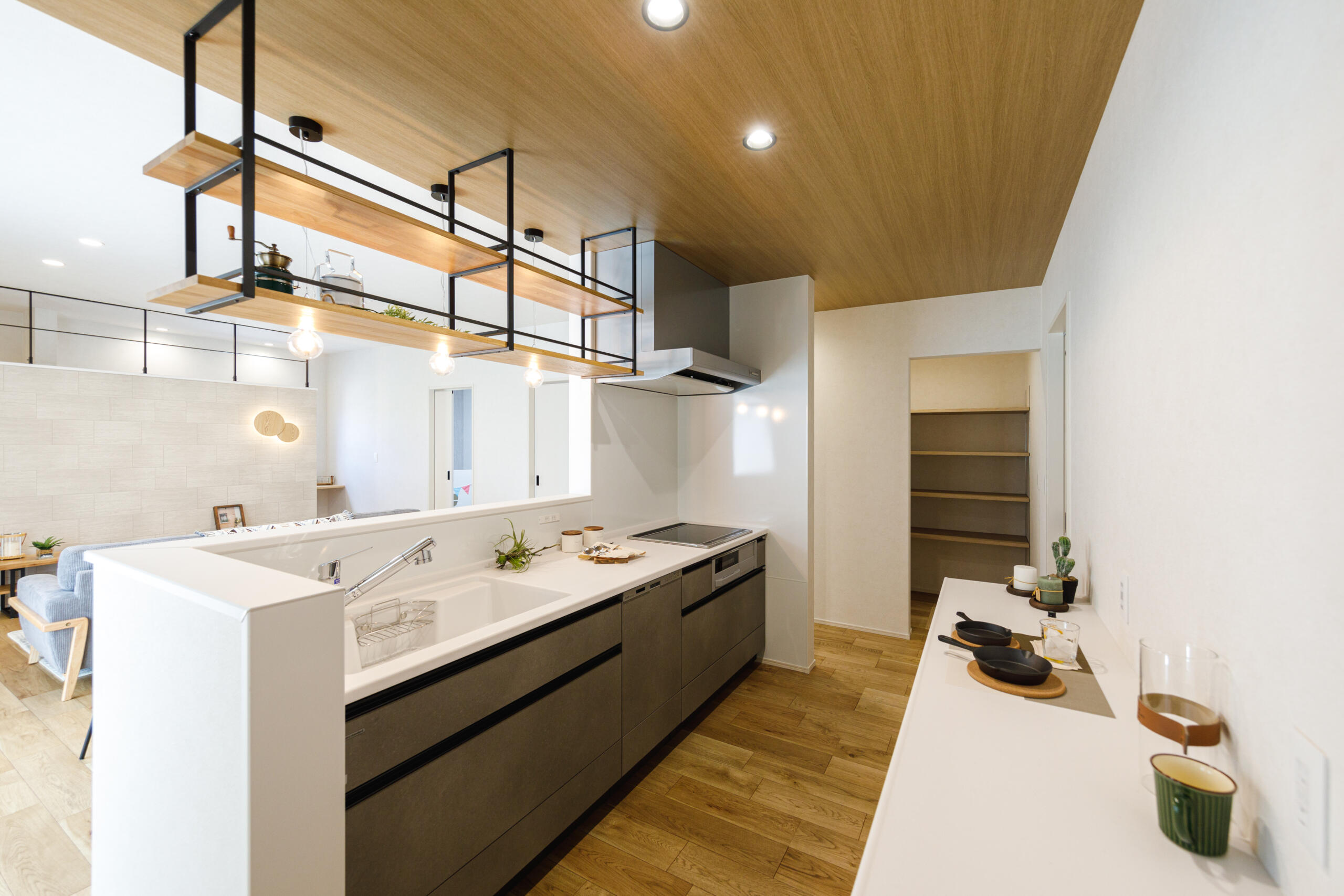 キッチンのすぐ隣には、L字型の食品庫を設けました。