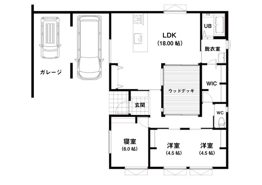ガレージ付き平屋モデル。
