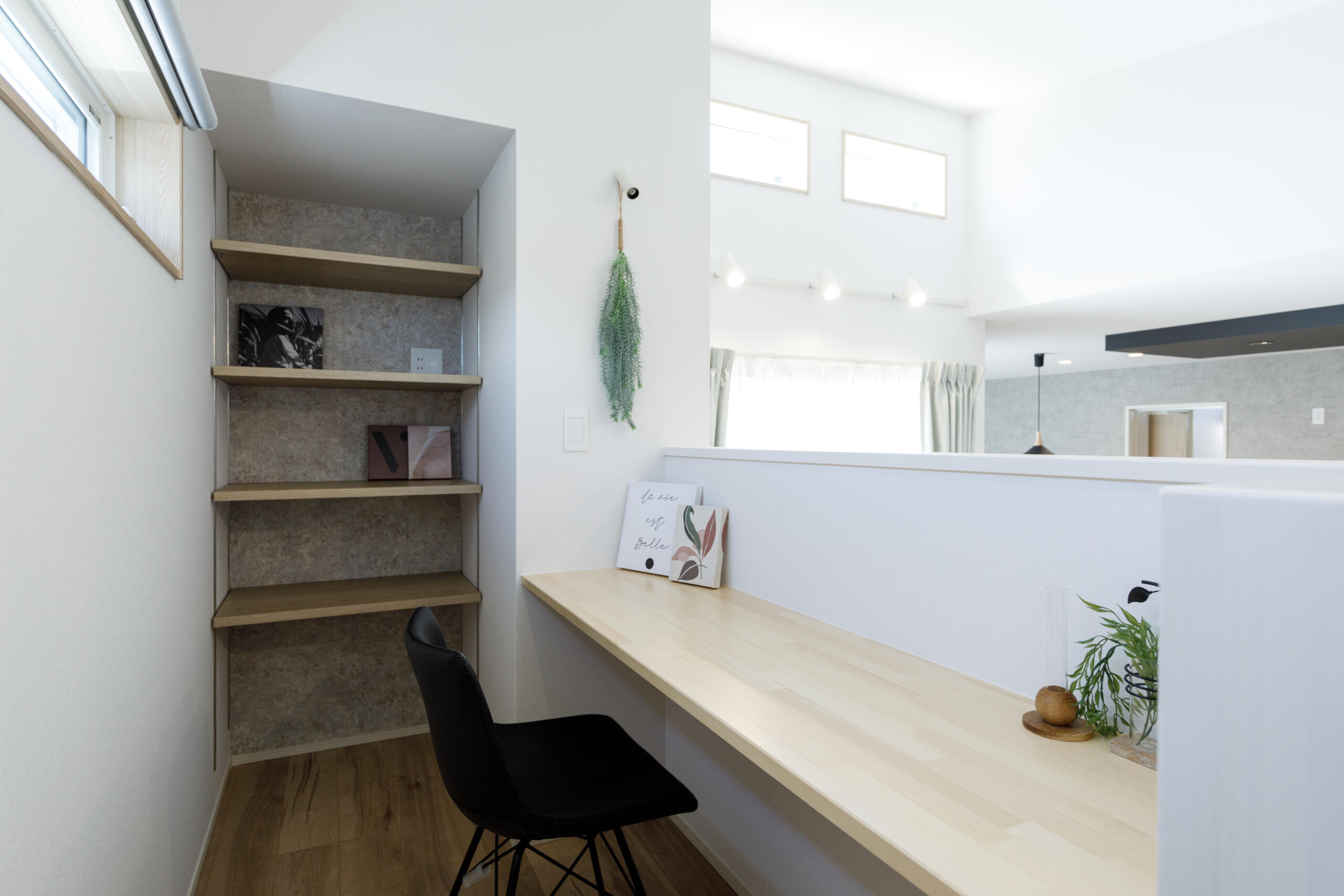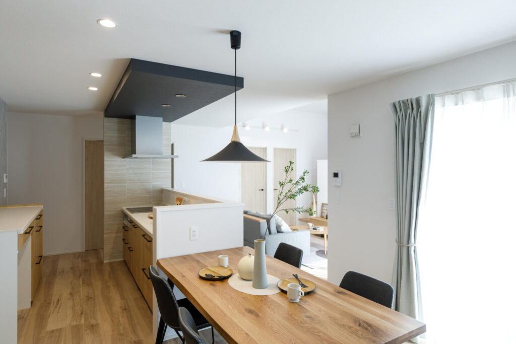 キッチンからはリビング全体を見渡せ、家族の気配を感じながら家事ができます。