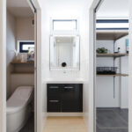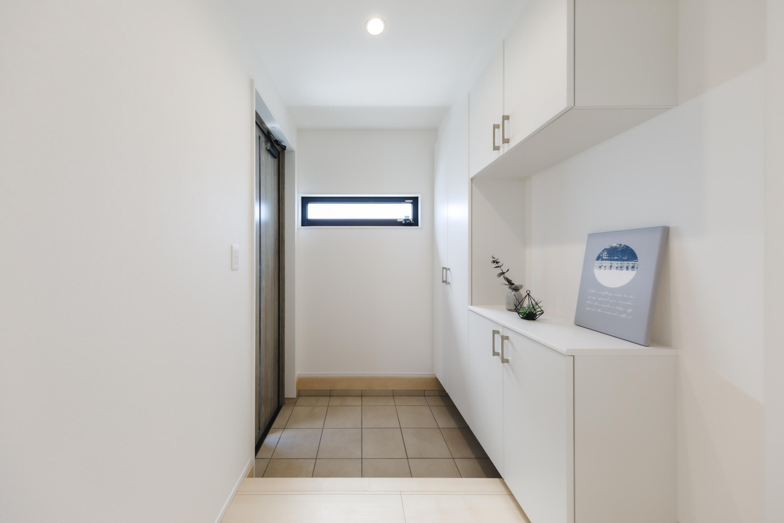 立ち上がり壁や腰壁で手元はさりげなく目隠し。
