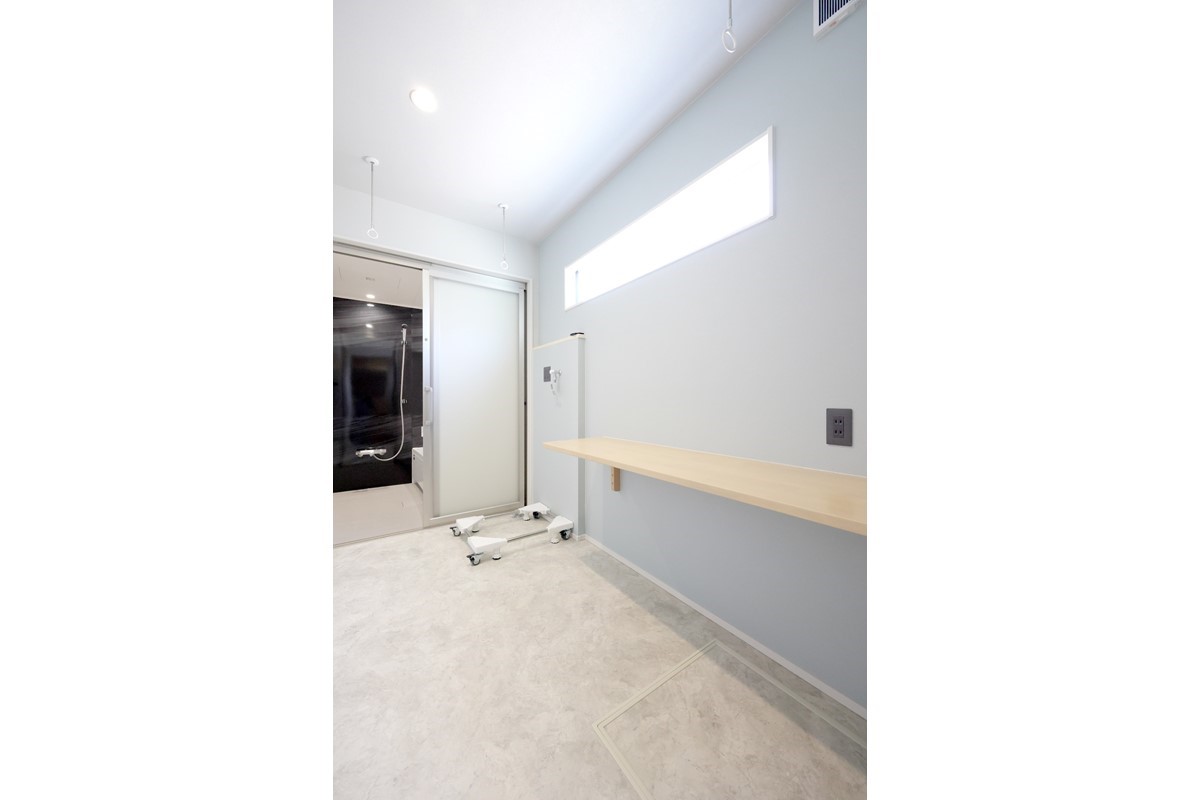 広々とした脱衣所兼室内干スペース。家事効率もUP。