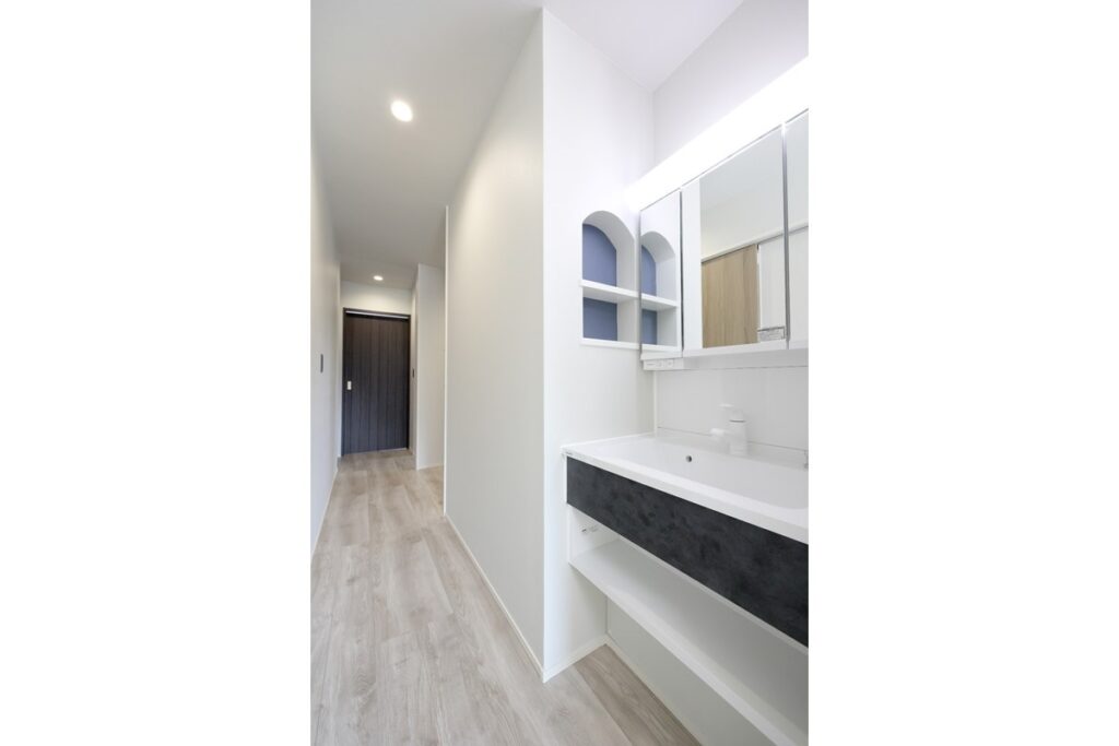 Rの可愛らしいニッチはリビング・洗面化粧台横にもあります。