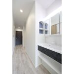 廊下部分に独立した洗面化粧台。パナソニック シーライン(マット【HQ】ヴィンテージメタル)