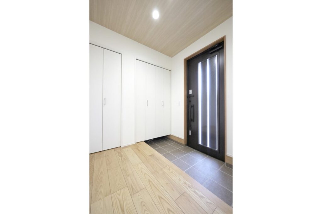 広々玄関は、扉を付ける事により収納力も抜群でスタイリッシュに仕上がっています。