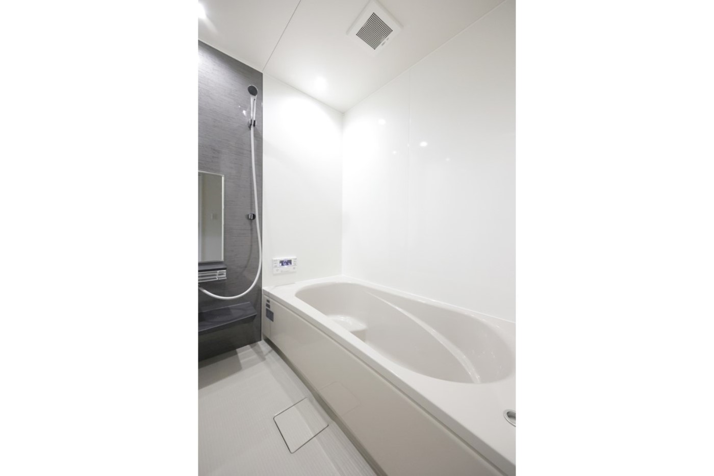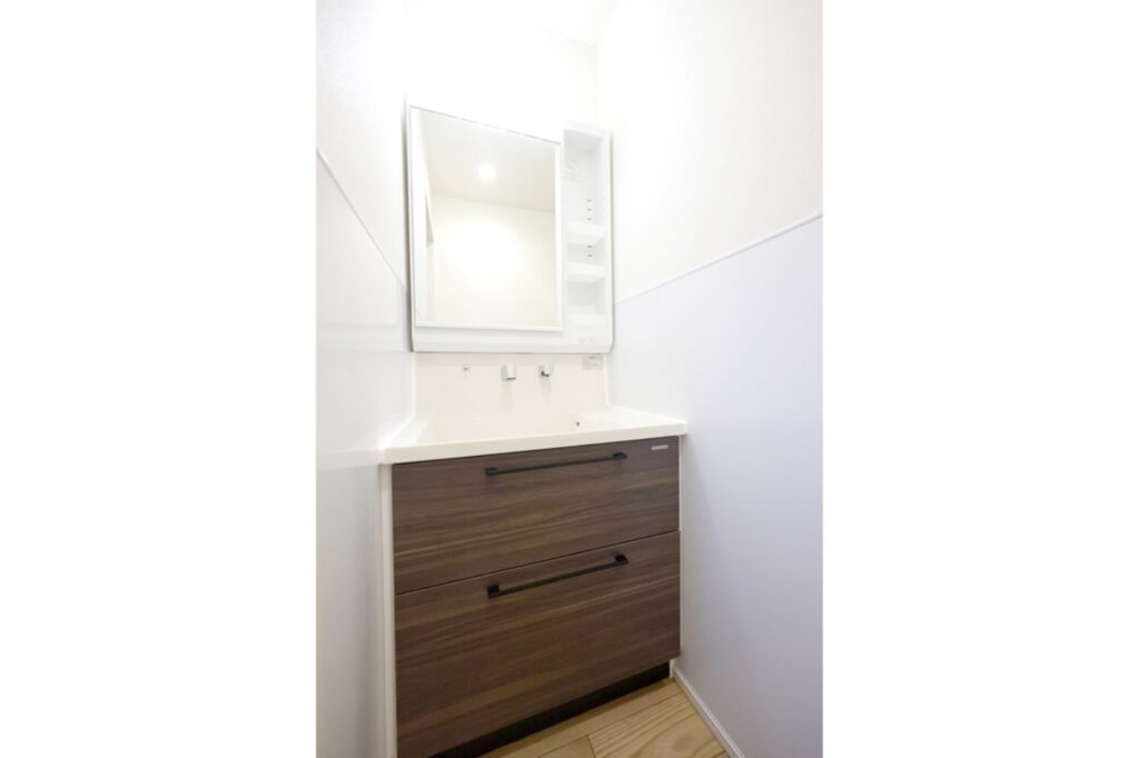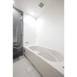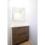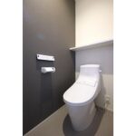 グレー系の色合いで統一された洗面所・ユニットバス・トイレ。