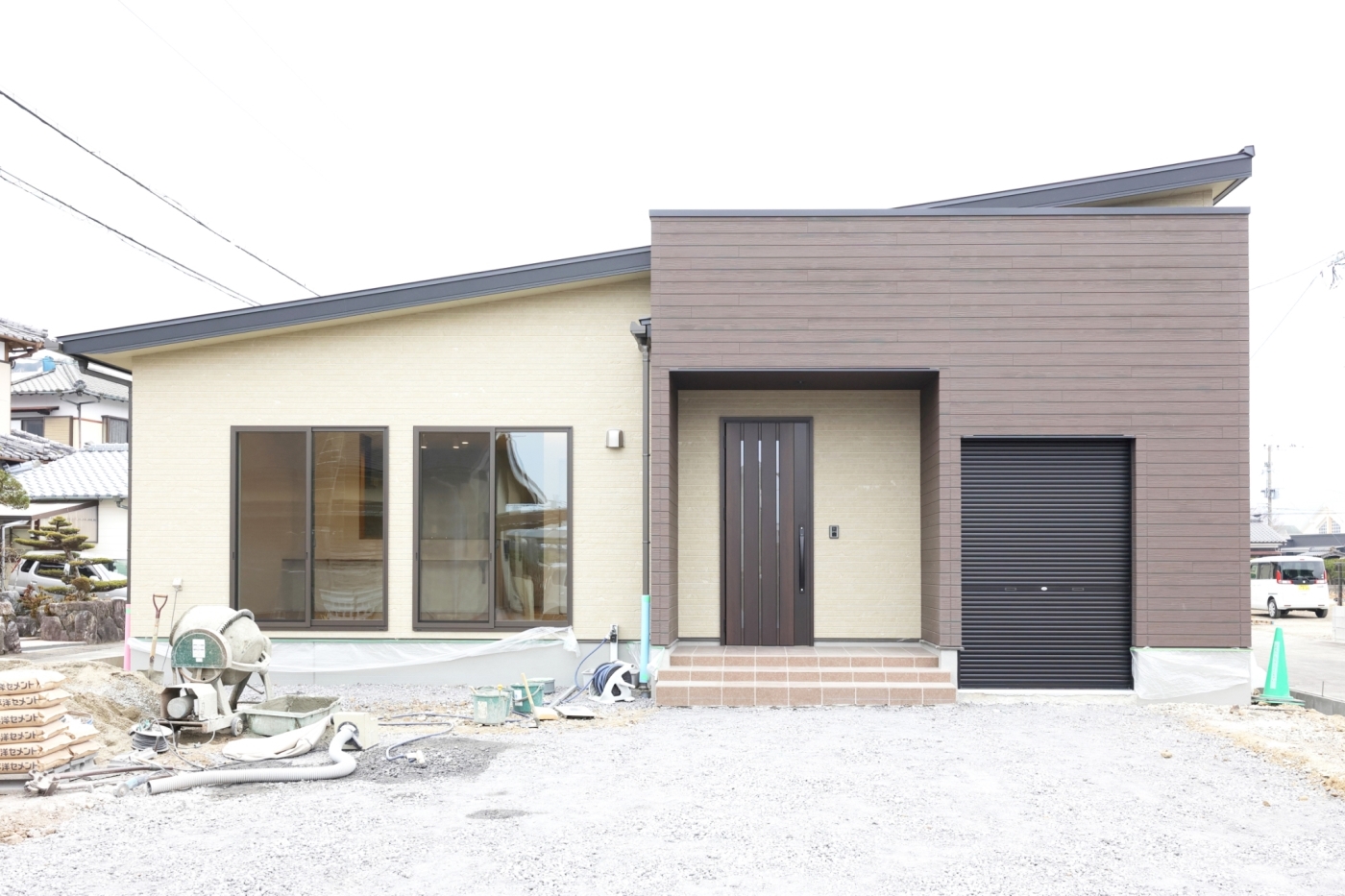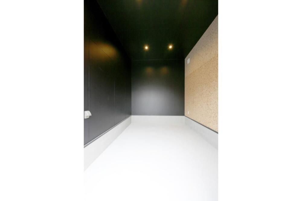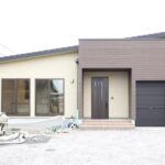 憧れのバイクガレージはブラックの外壁とOSBボードを採用。