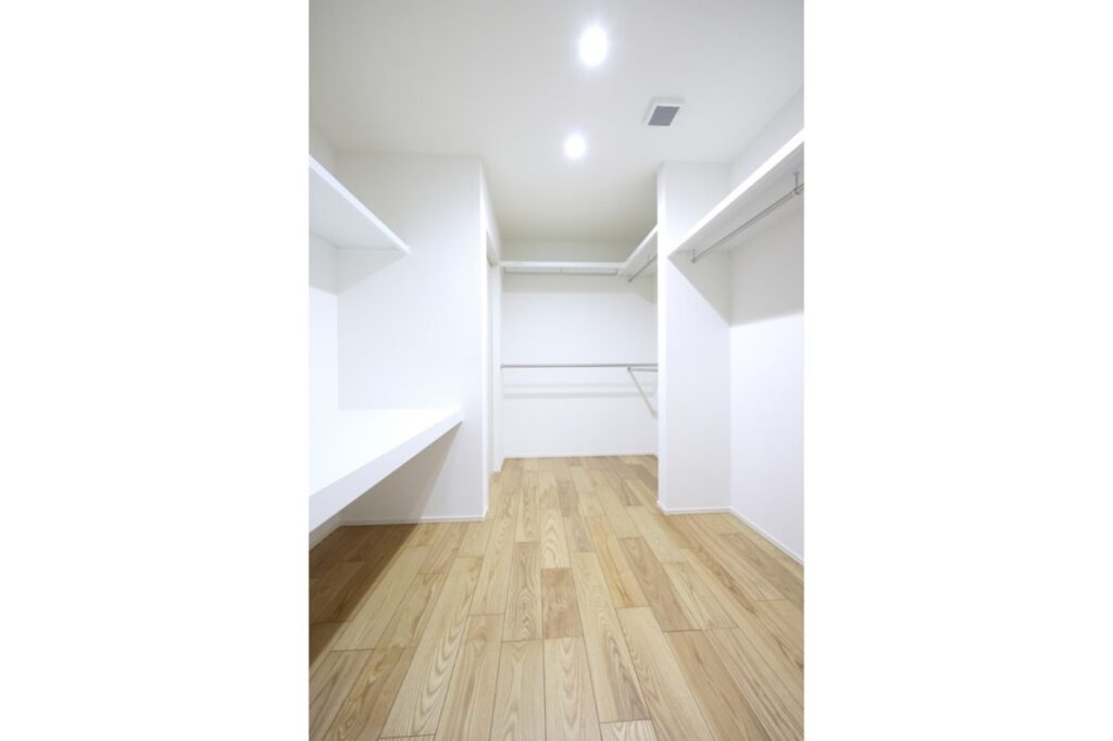 洗面所からリビングに抜けれるファミリークローゼット。
