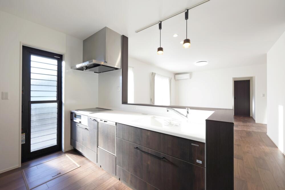 コンパクトな敷地に快適空間!ウォールナット調で統一された大人かっこいいスタイリッシュな平屋