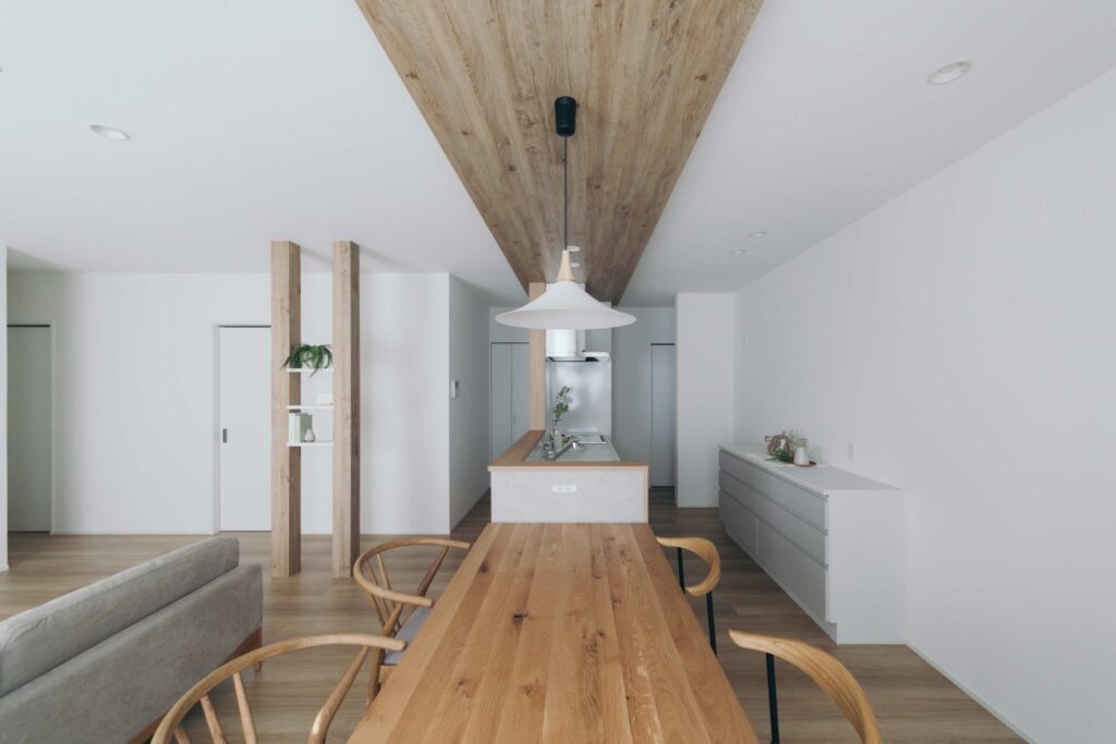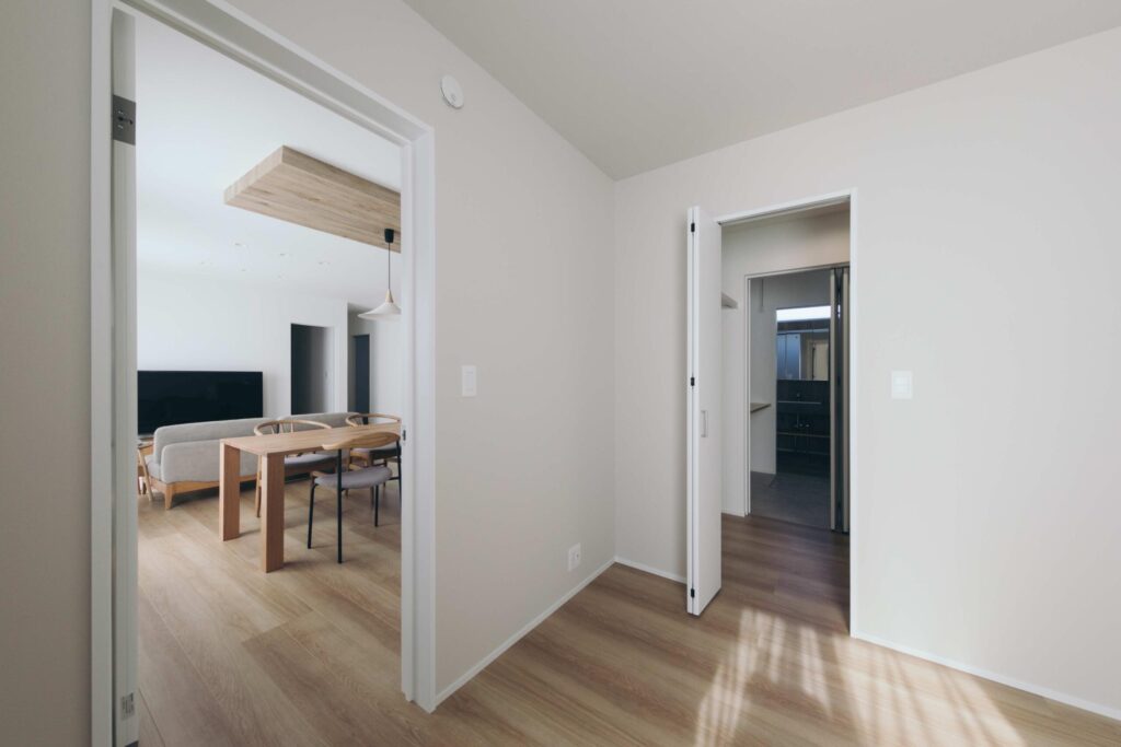 視線が横に抜けるレイアウトで空間に開放感が生まれ、