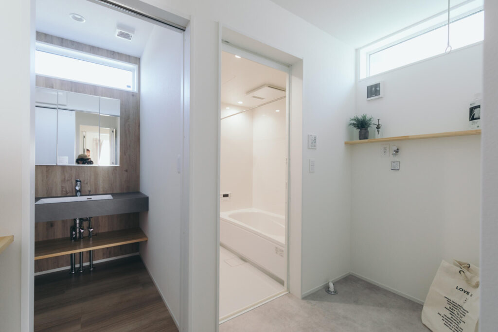 脱衣室からランドリールーム、さらにウォークインクローゼットへ