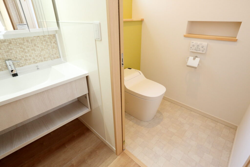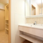 脱衣所を広く取り、雨の日の室内干しが出来る様にしたことで、人が来ても洗濯物が丸見えにならず、早く乾くので、忙しい私としては大助かりです。