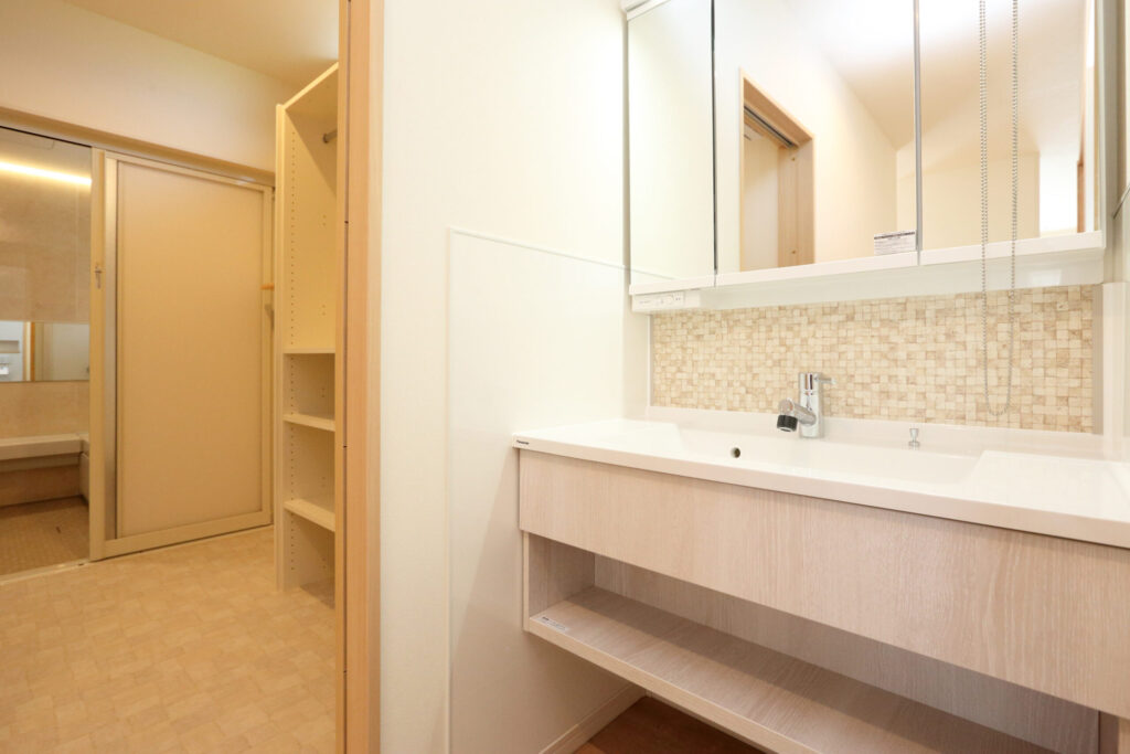 脱衣所も広々、雨の日の室内干しもラクラク
