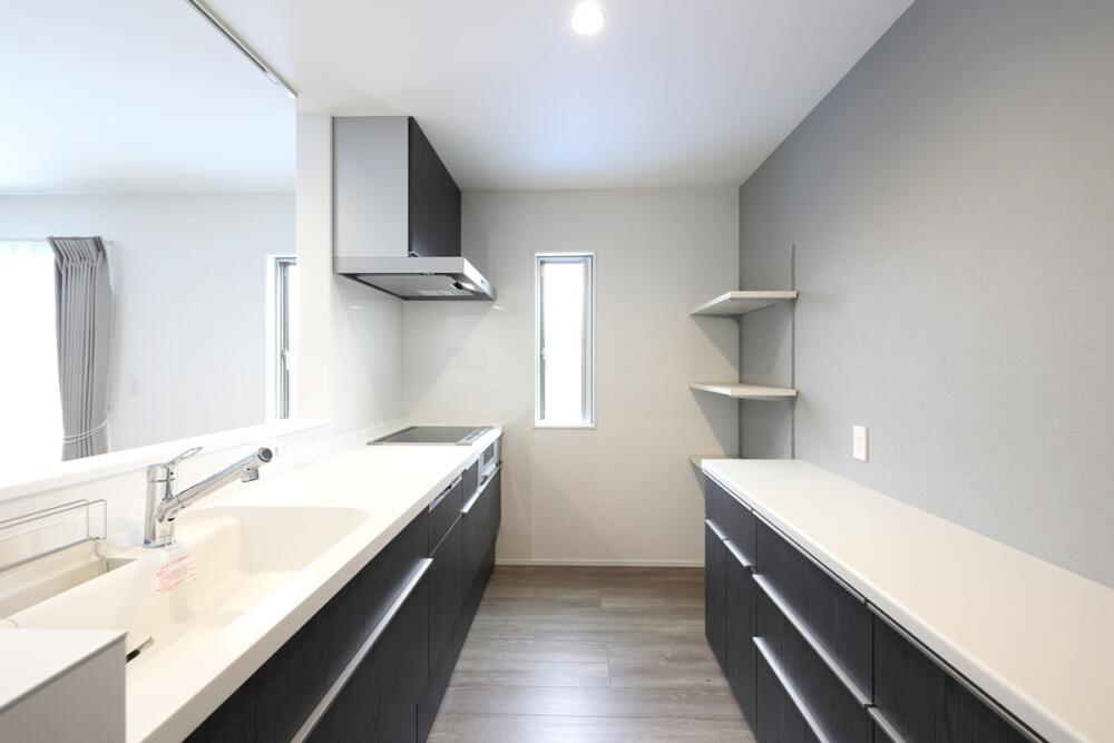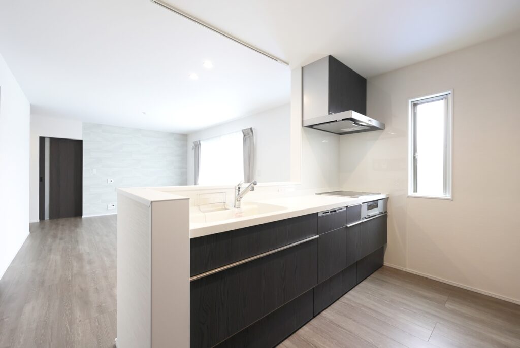 キッチンは、リクシル ES(扉カラー:バーンドウッド)を採用されています。
