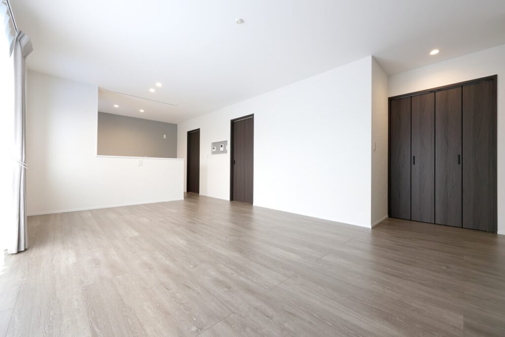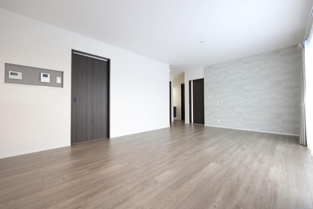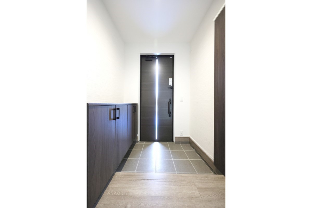 玄関側のリビング横に収納・洗面台・トイレとあるため使い勝手もばつぐん!
