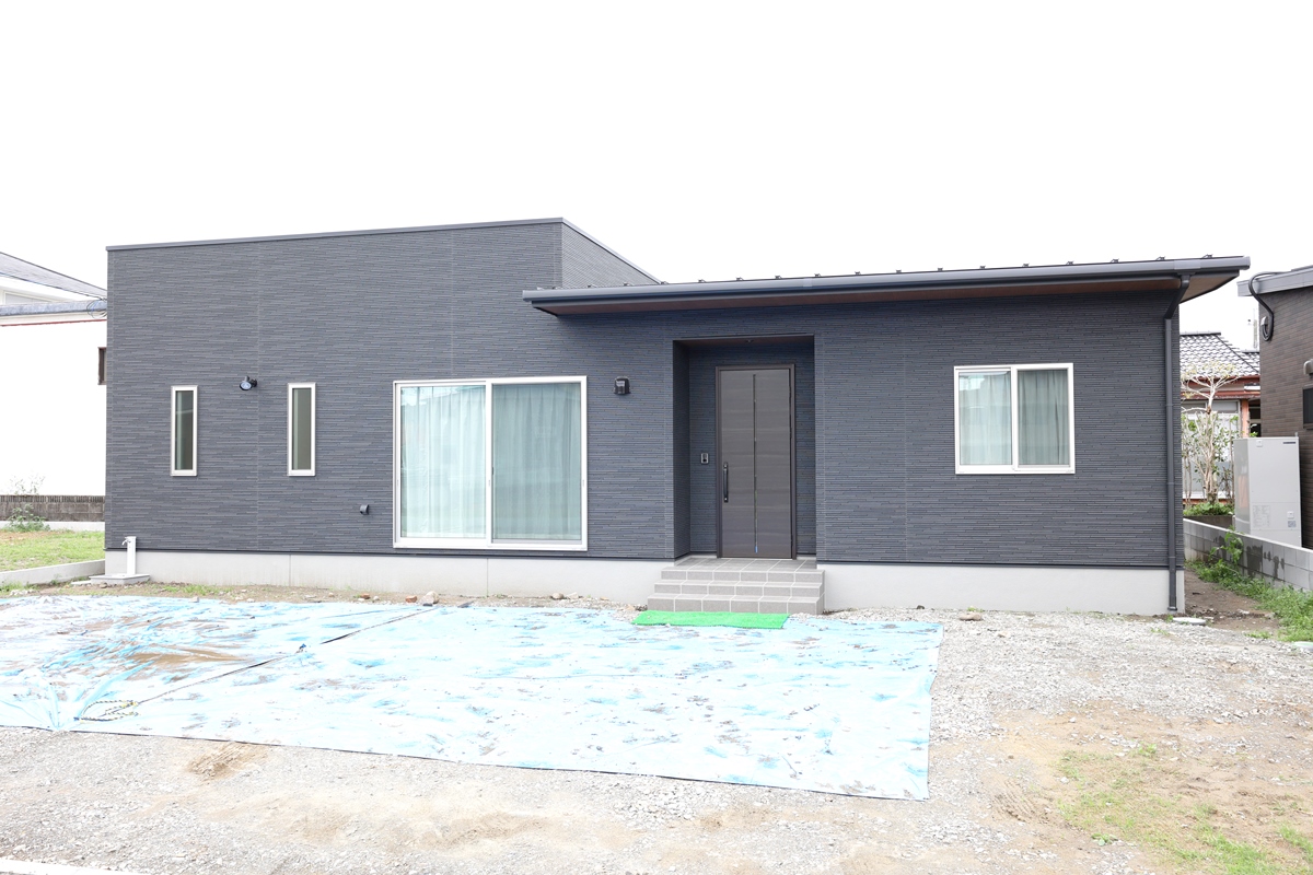 南側道路で建物をできるだけ北側に配置・間取りしたので駐車スペースと